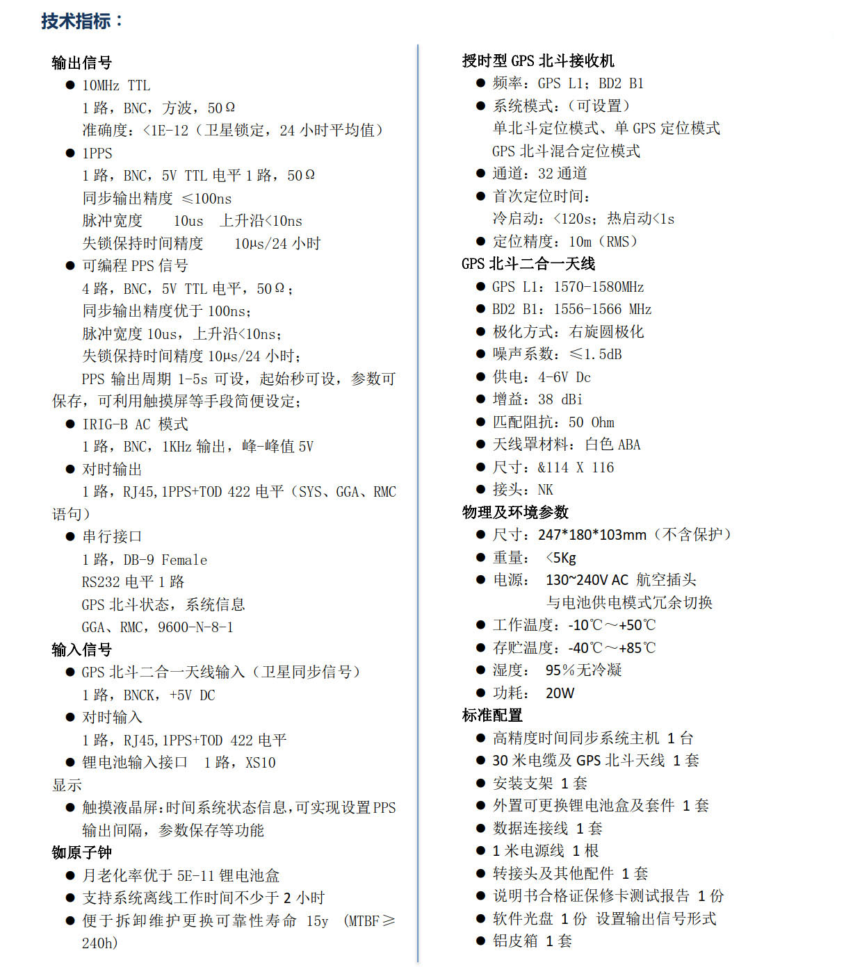 HJ5435-BDV1 便攜式G選用高精度銣原子鐘和高精度授時(shí)型GPS北斗接收機(jī),采用獨(dú)特的頻率測控技術(shù),對銣鐘的輸出頻率進(jìn)行精密測量與校準(zhǔn),使GPS馴服銣鐘的輸出頻率精確同步在GPS或北斗系統(tǒng)上,準(zhǔn)確度優(yōu)于1E-12,不用進(jìn)行校準(zhǔn)就能提供高精度的頻率信號。HJ5435-BDV1 同步裝置不但提供了高精度的頻率標(biāo)準(zhǔn),還同時(shí)提供了“復(fù)現(xiàn)”的UTC時(shí)間基準(zhǔn)。GPS或北斗馴服銣鐘輸出的10MHz信號經(jīng)過...